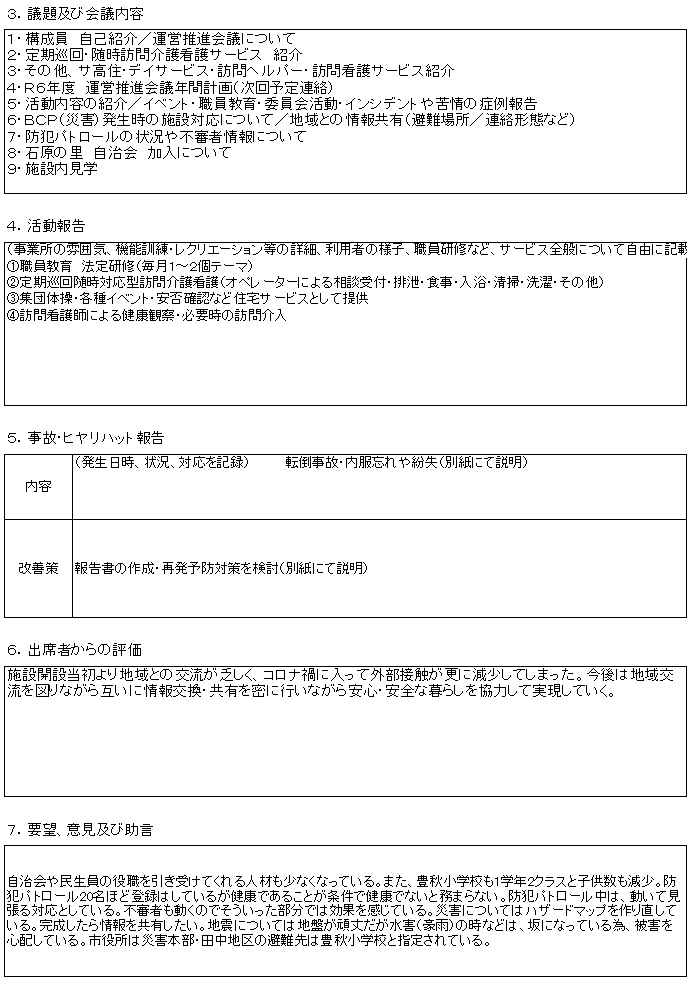 令和6年7月運営推進会議議事録